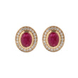 Elegant Oval Ruby and Diamond Halo Stud Earrings in Solid Gold