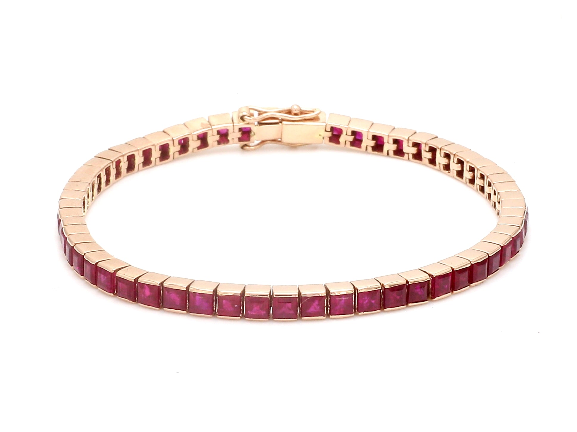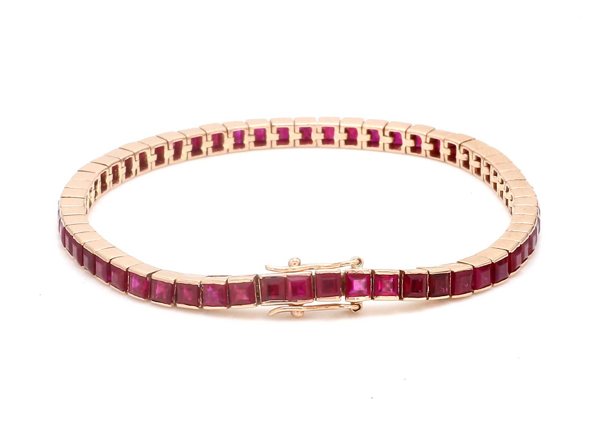 Ruby Princess Cut Channel Set Tennis Bracelet