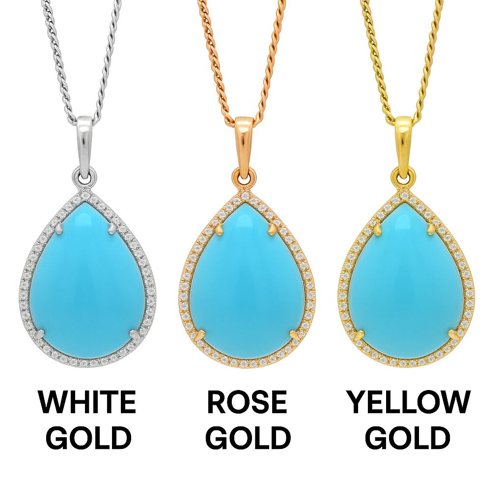 Turquoise Diamond Teardrop Pendant Gold | Diamond Halo – Jewels Park