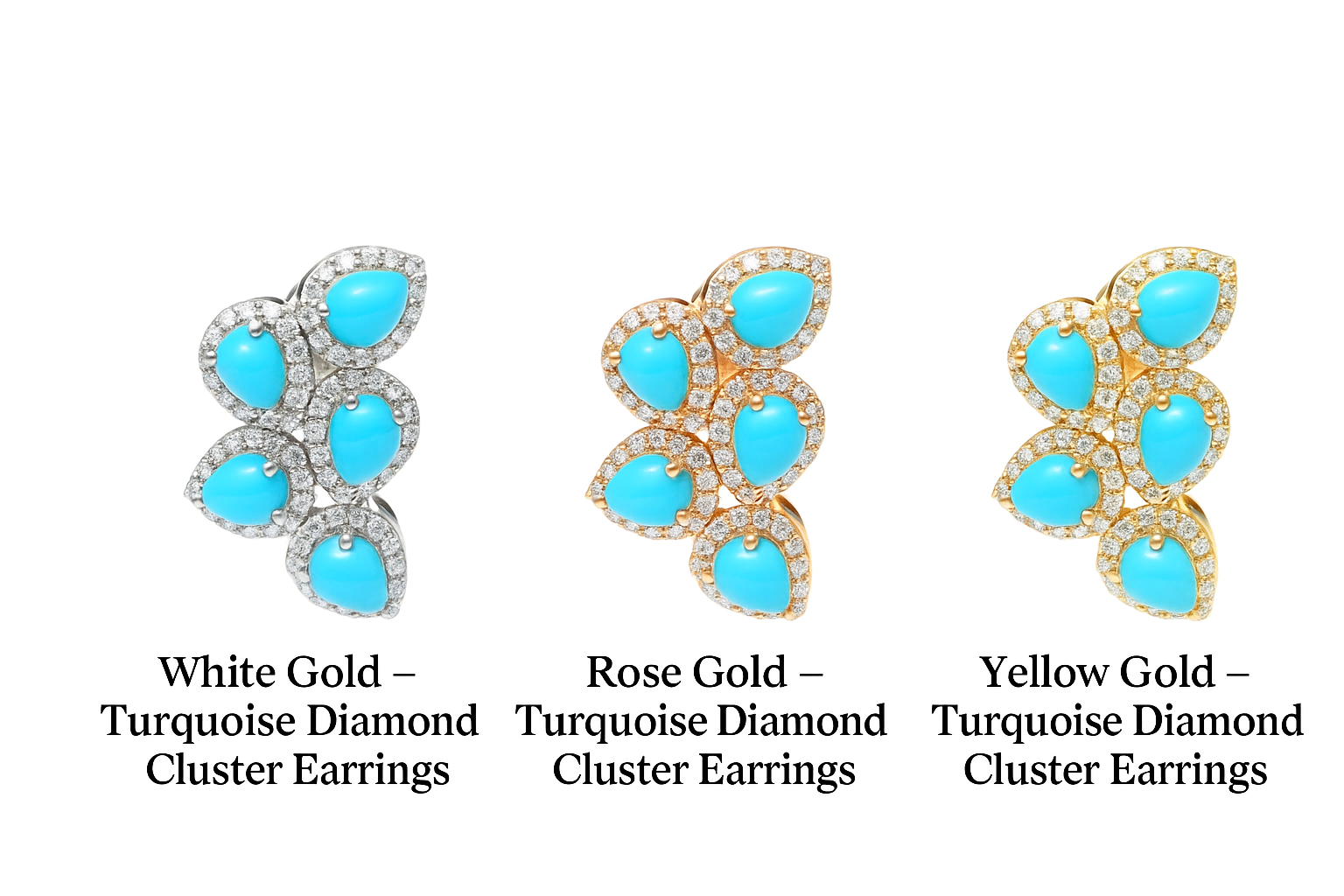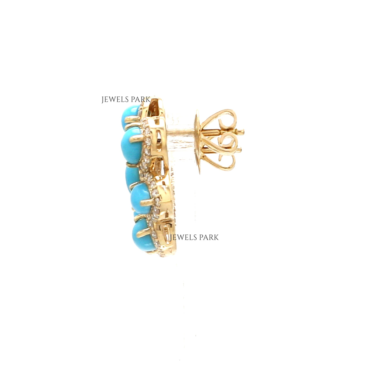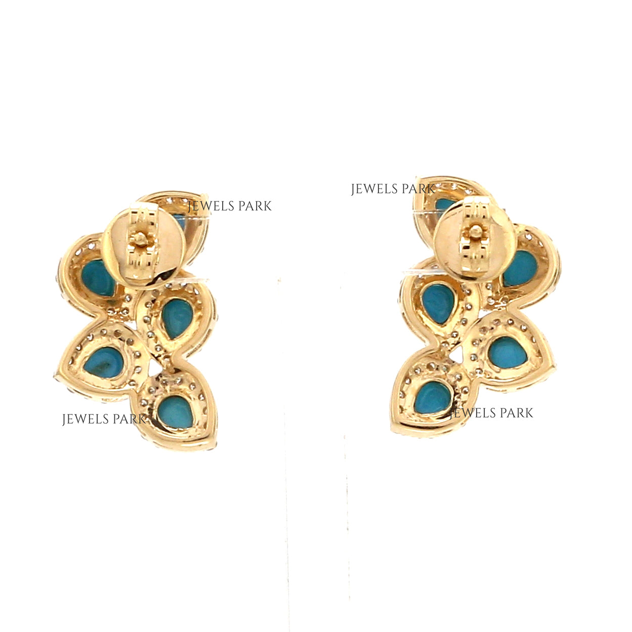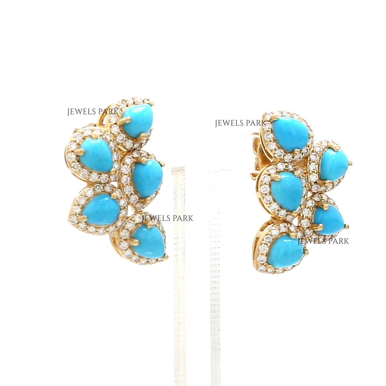Turquoise Pear Cluster Diamond Earrings Gold – Elegant Statement Studs by Jewels Park