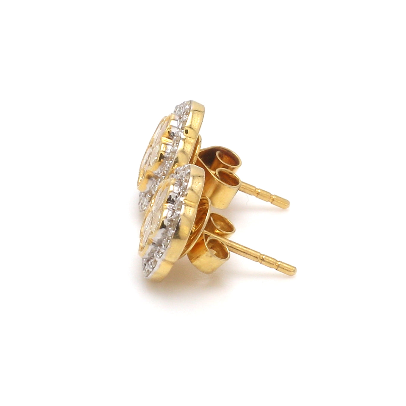 Yellow Diamond Floral Halo Earrings – Natural Diamond Gold Studs