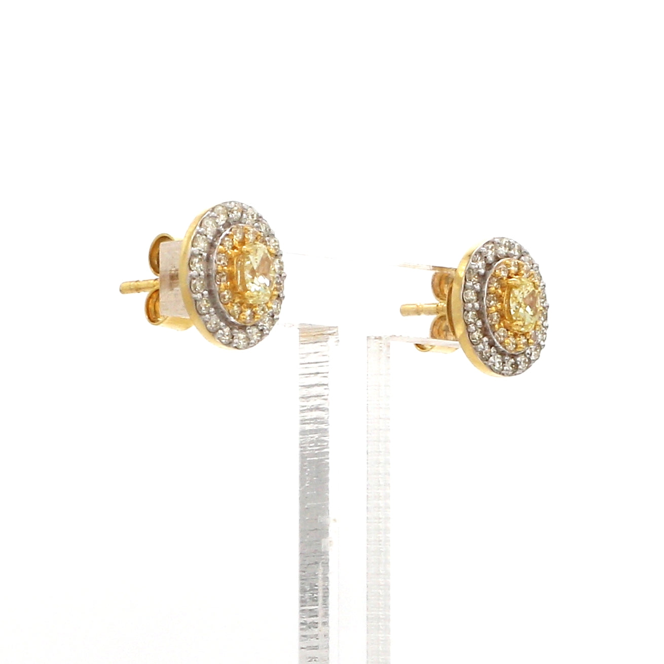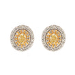 Yellow Diamond Stud Earrings in Gold – Oval Cut Yellow Diamonds with Double Diamond Halo